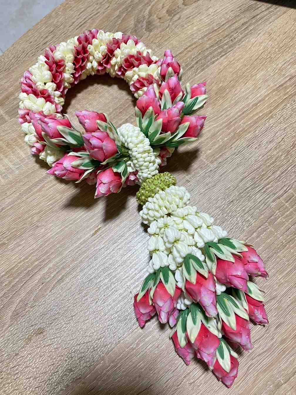 ประทับใจในความประณีตและใส่ใจในทุกรายละเอียดมาก พานแต่ละพานถูกออกแบบอย่างมีเอกลักษณ์ ใช้ดอกไม้สดหลากสีสันที่จัดวางอย่างกลมกลืนตามลวดลายไทยแบบดั้งเดิม กลิ่นหอมของดอกไม้ช่วยเพิ่มความขลังให้กับบรรยากาศของพิธีได้เป็นอย่างดีทางร้านยังมีความรู้เรื่องวัฒนธรรมและพิธีการไทย สามารถให้คำแนะนำว่าควรใช้ดอกไม้อะไรในแต่ละโอกาส และจัดวางตามแบบแผนได้ถูกต้อง สื่อถึงความเคารพและความหมายอันลึกซึ้งของพานแต่ละใบเหมาะสำหรับผู้ที่ต้องการพานดอกไม้ไทยในงานพิธีต่าง ๆ เช่น ไหว้ครู ทำบุญ ขึ้นบ้านใหม่ หรือแม้แต่งานแต่งงานแบบไทย รับรองว่าสวยงามแน่นอนค่ะ